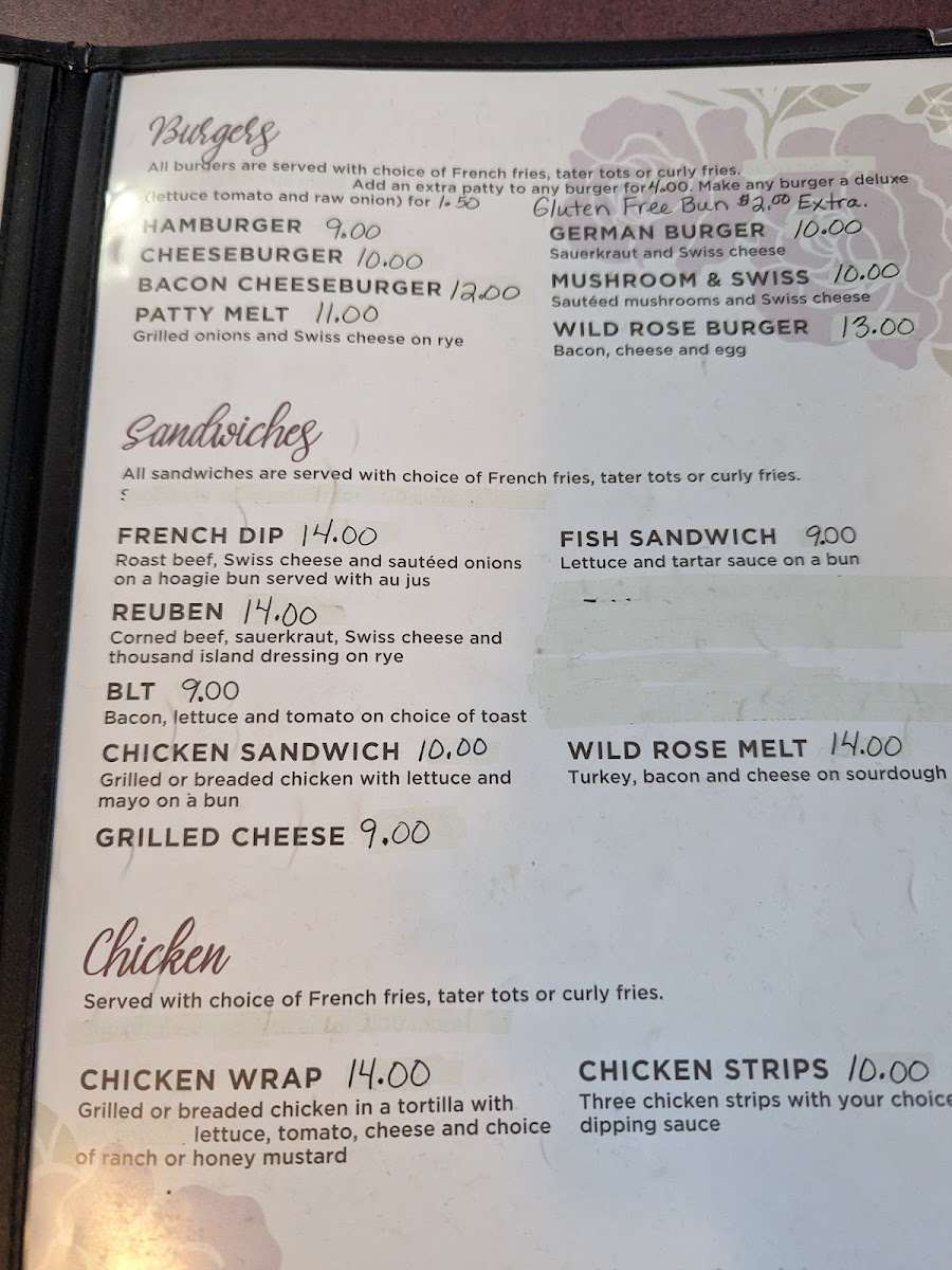 The Wild Rose Bar & Cafe Menu
